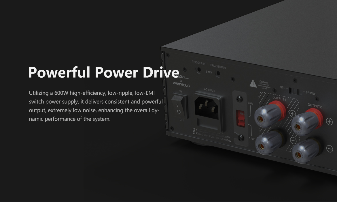 | Signal-to-Noise Ratio (SNR) | >110dB, “A” weighted @ 4Ω 260W |