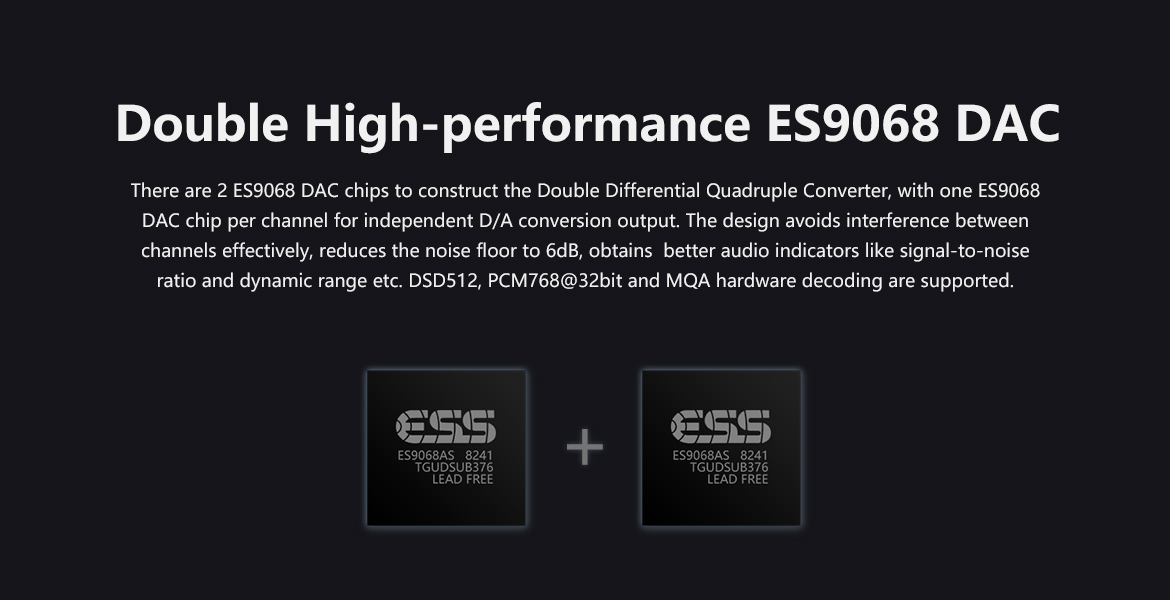 Dual ES9068 D\A converter chip, independent decoding for dual channel.