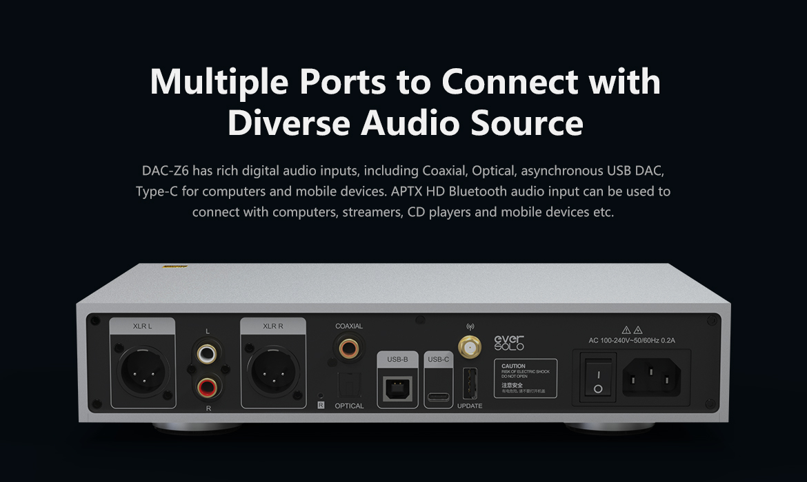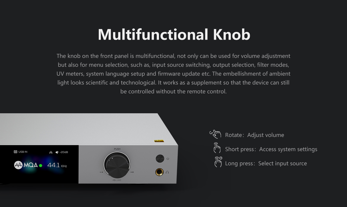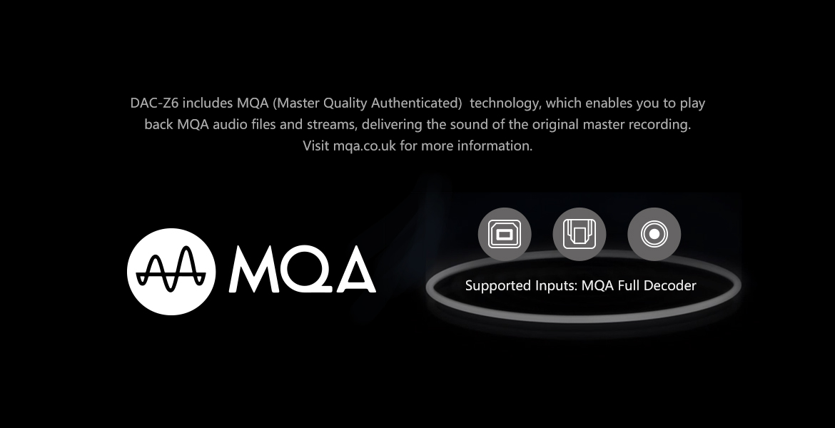 Optical, Coaxial and USB support MQA full decoding and rendering.