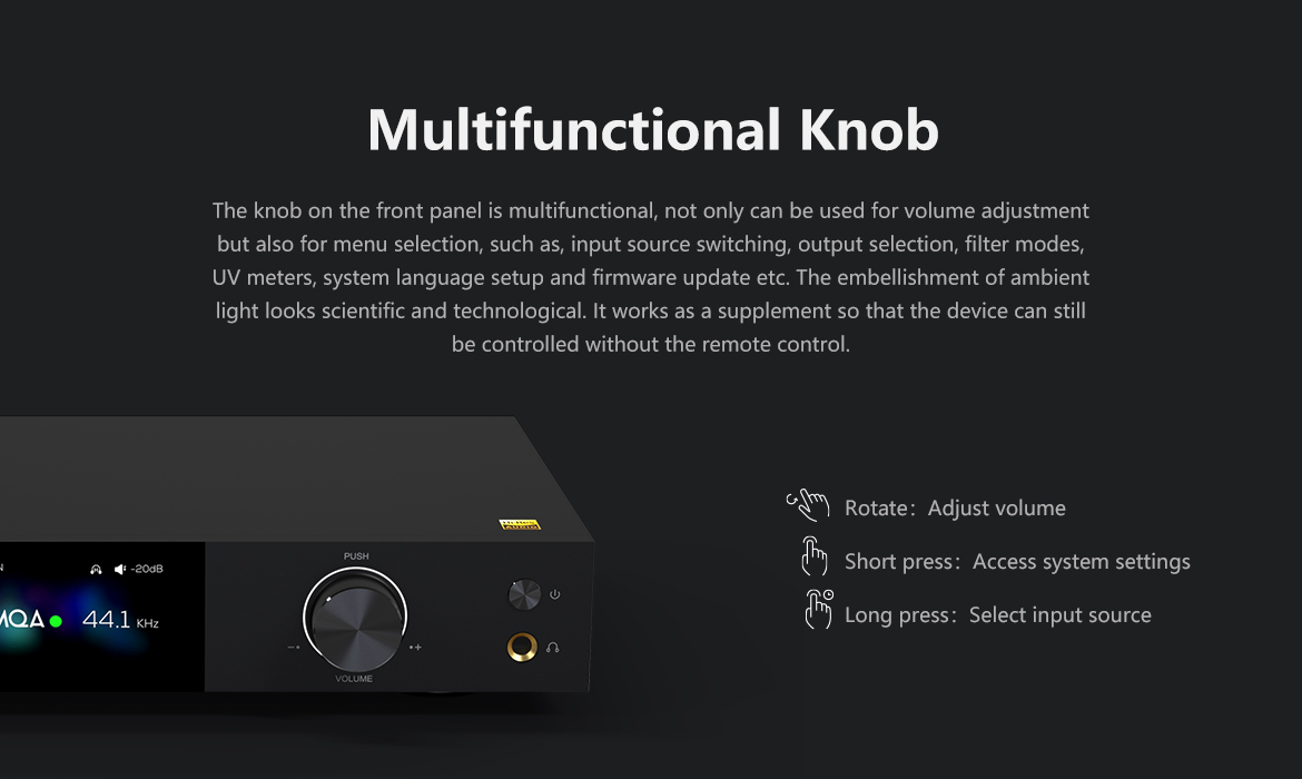 | USB-C DAC Input | Compatible with Windows (7, 10), Mac, Android, IOS; up to stereo DSD512, PCM 768kHz 32Bit, MQA |