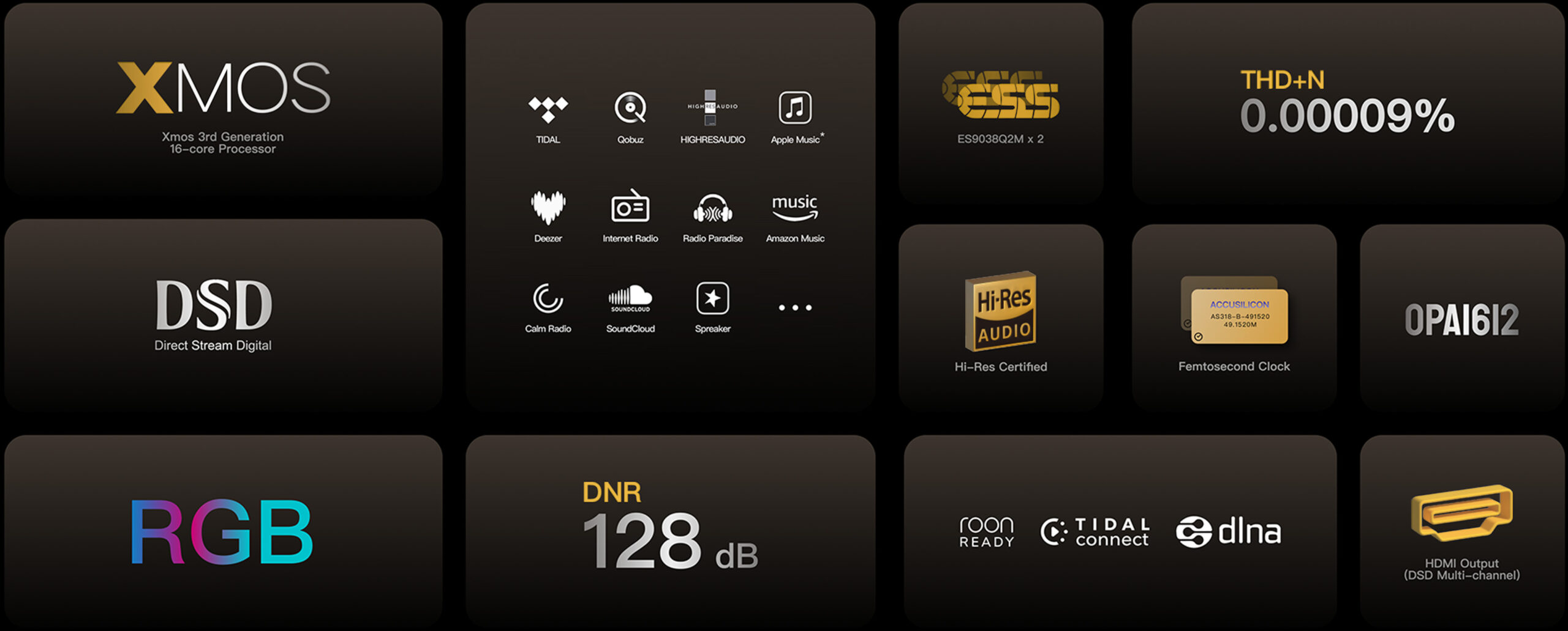 Seamlessly supports Roon and TIDAL Connect, integrating your digital music ecosystem and optimizing streaming experience. With just a tap on the screen or through a mobile app, you can easily switch devices and immerse yourself in music anytime.